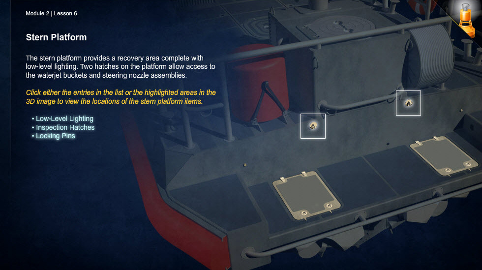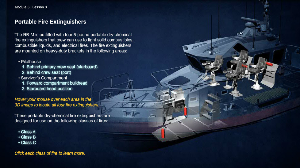 As the Art Lead, I coordinated with Instructional Designers to create a training course for the United States Coast Guard's Response Boat. I utilized Maya, Substance, and Photoshop to establish art direction for the training course while modeling, texturing and rendering to create the RBM asset.